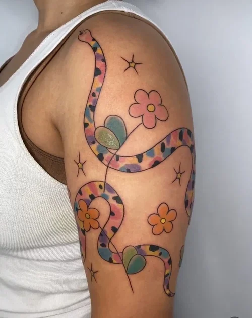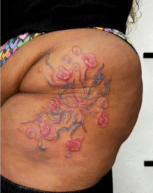 yes!! colour tattoos can feel very inaccessible for clients with dark skin tones, but please don’t feel like you’re unable to get the tattoos that you want. i’m happy to offer colour tests (free for people of colour) to find out what heals well on your skin. we can do small intentional designs such as rainbows / coloured flowers etc, so that you don’t have to get a tattoo of coloured dots that you might not want. i am doing my best to continually educate myself on best practices for tattooing dark skin, and i’d love to work with you to pick the best colours and make a really beautiful tattoo for you.