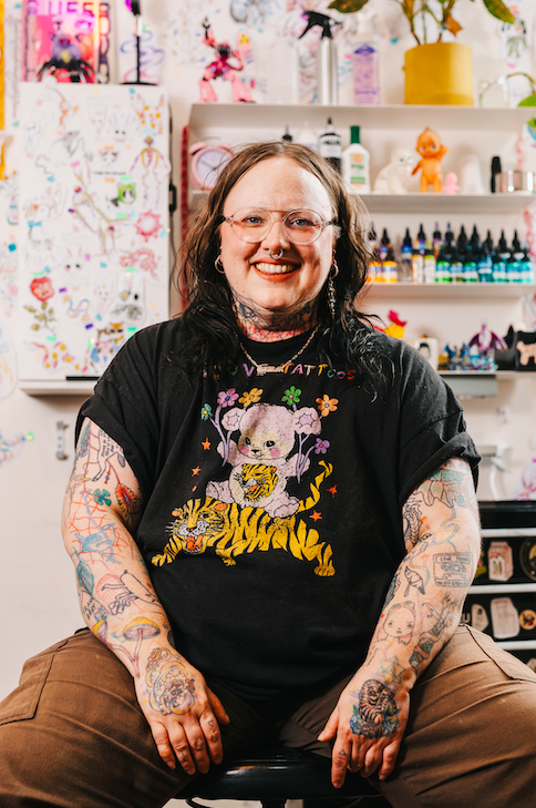 germ (flack) is a non-binary tattooer at previously based in Naarm / Melbourne Australia, and now in Brighton UK. their tattoo practice is devoted to helping clients access the healing and transformative power that is possible within tattooing. as a fat, trans and neurodivergent tattooer they are dedicated to making a comfortable and celebratory space for queer, fat, disabled and marginalised people to get tattooed.